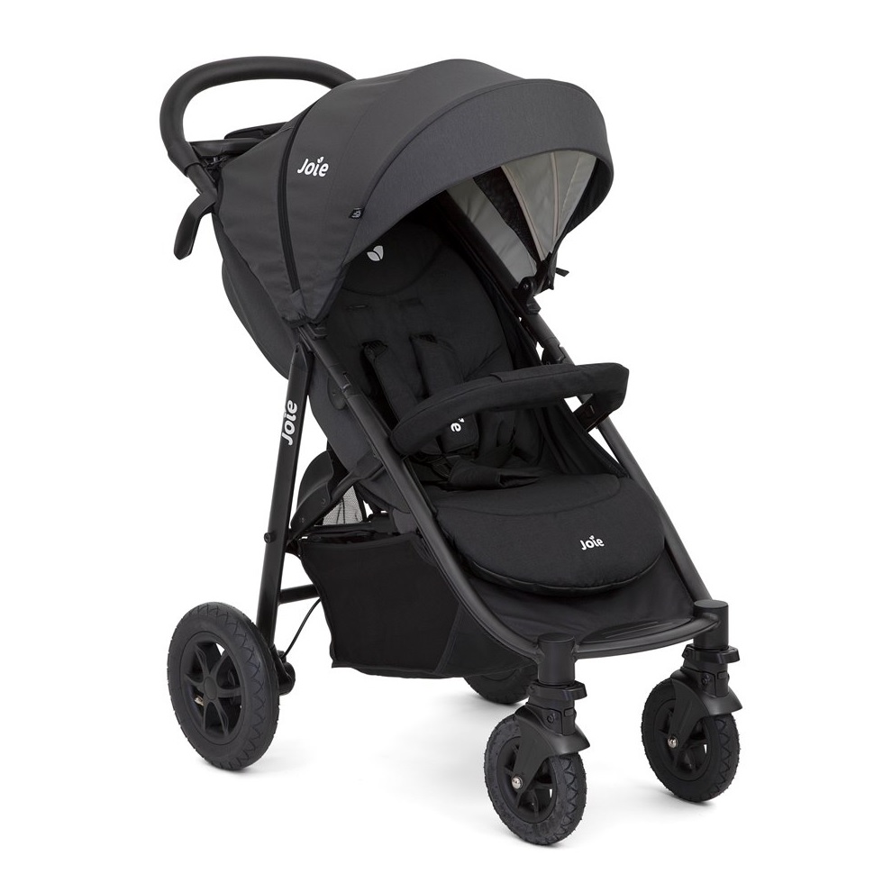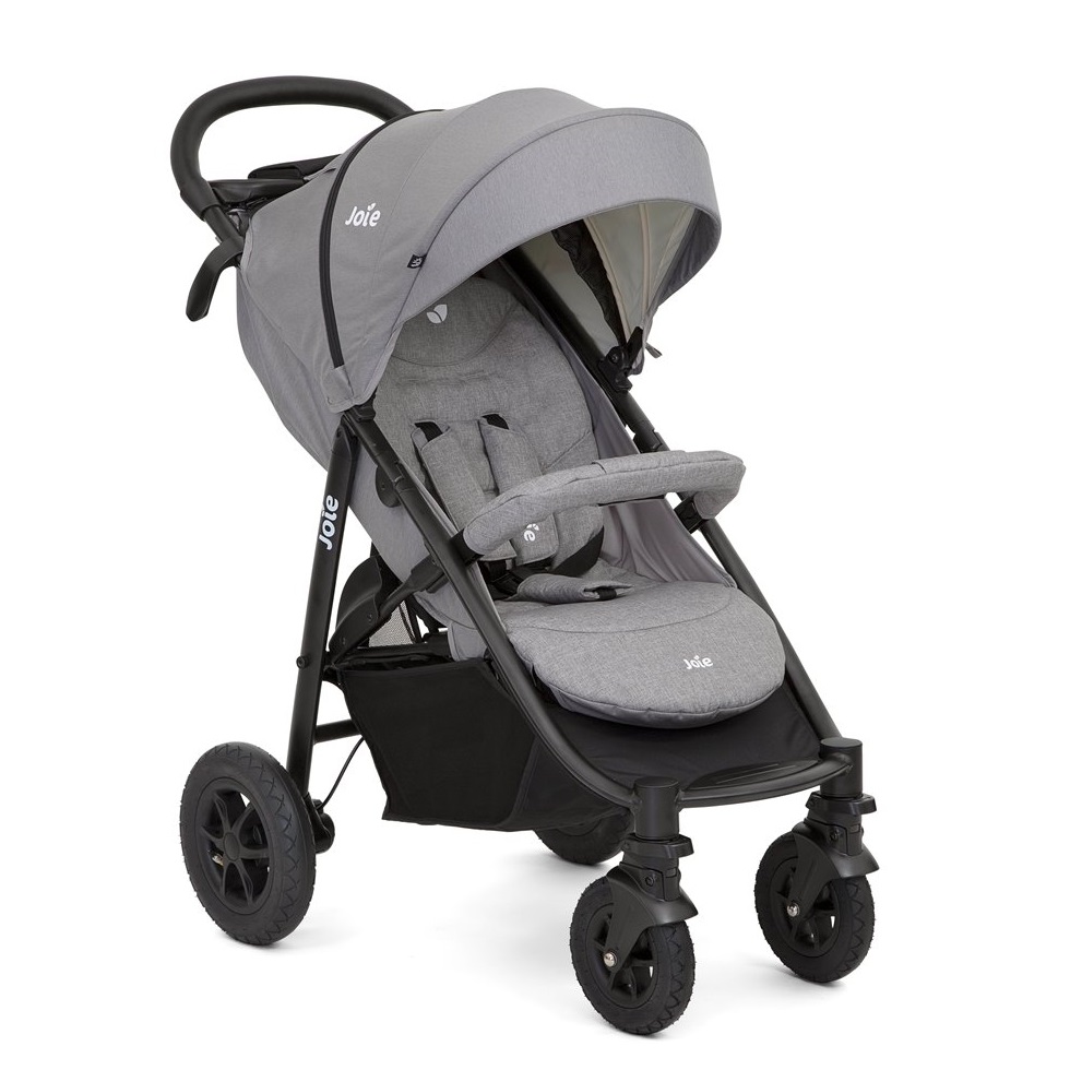 Прочное шасси Joie Pact изготовлено из алюминиевого сплава. Плавный ход обеспечивают колёса с системой амортизации на каждом. Передние колёса коляски вращаются, при желании их можно зафиксировать для более удобного прохождения сложных участков дороги. Надёжный ножной тормоз оснащён накладкой ShoeSave, которая заботится о сохранности вашей обуви. Сетчатая корзина для покупок имеет удобный доступ, даже если спинка сиденья откинута в максимально горизонтальное положение.