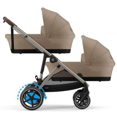 - Трансформер. Данный вид транспортировочного средства оснащается сменными коробами и сидениями. В таких колясках детей можно расположить, как рядом, так и лицом к лицу. Одно сидение или люлька может быть размещена выше, а вторая ниже. Помимо этого детей можно расположить, как против, так и по ходу движения. Для одного малыша можно выбрать спальный режим, а для второго сидячий. Недостатком данного вида колясок следует считать их большой вес.