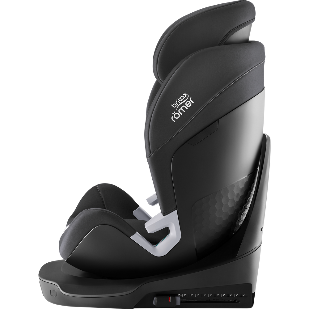 - Наклон спинки и высота подголовника регулируются, адаптируясь под рост ребенка, и конкретную ситуацию, что позволяет отправляться в дальние путешествия и использовать автомобильное кресло Britax Romer SWIVEL на протяжении длительного времени – ребенок сможет в нем спать.