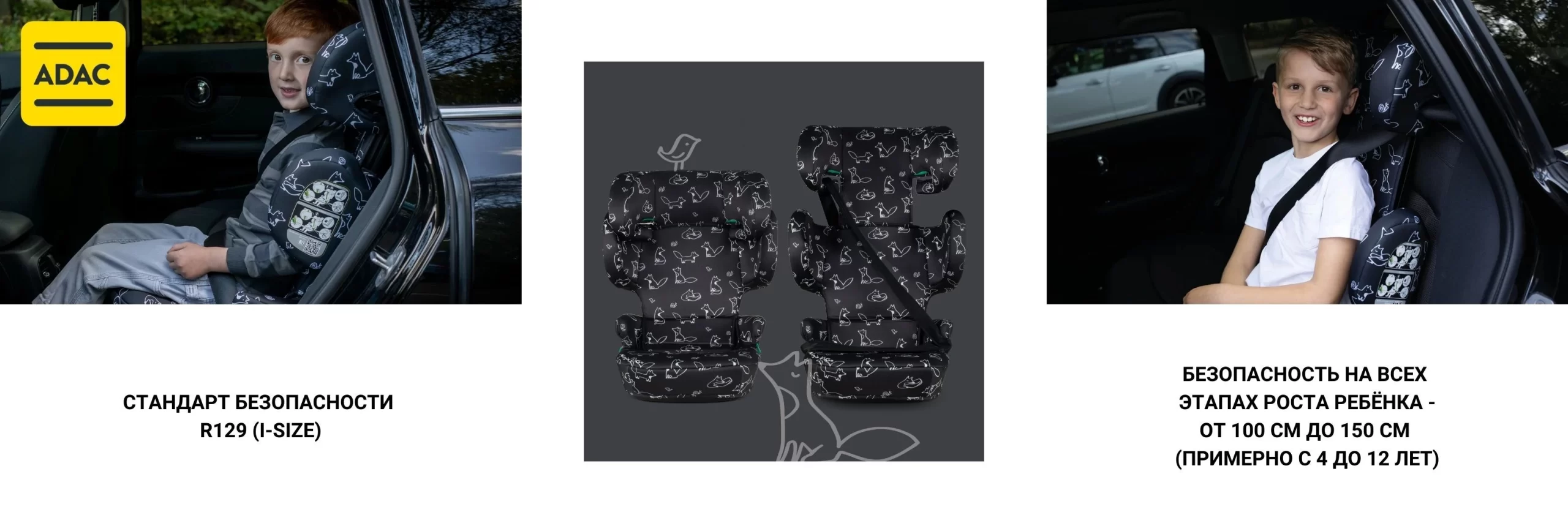 Автокресло рассчитано для детей ростом от 100 см до 150 см (примерно с 4 до 12 лет). Регулируемые подголовник и спинка легко адаптируются под каждый этап взросления, обеспечивая комфорт и надёжную защиту — от детского сада до средней школы.