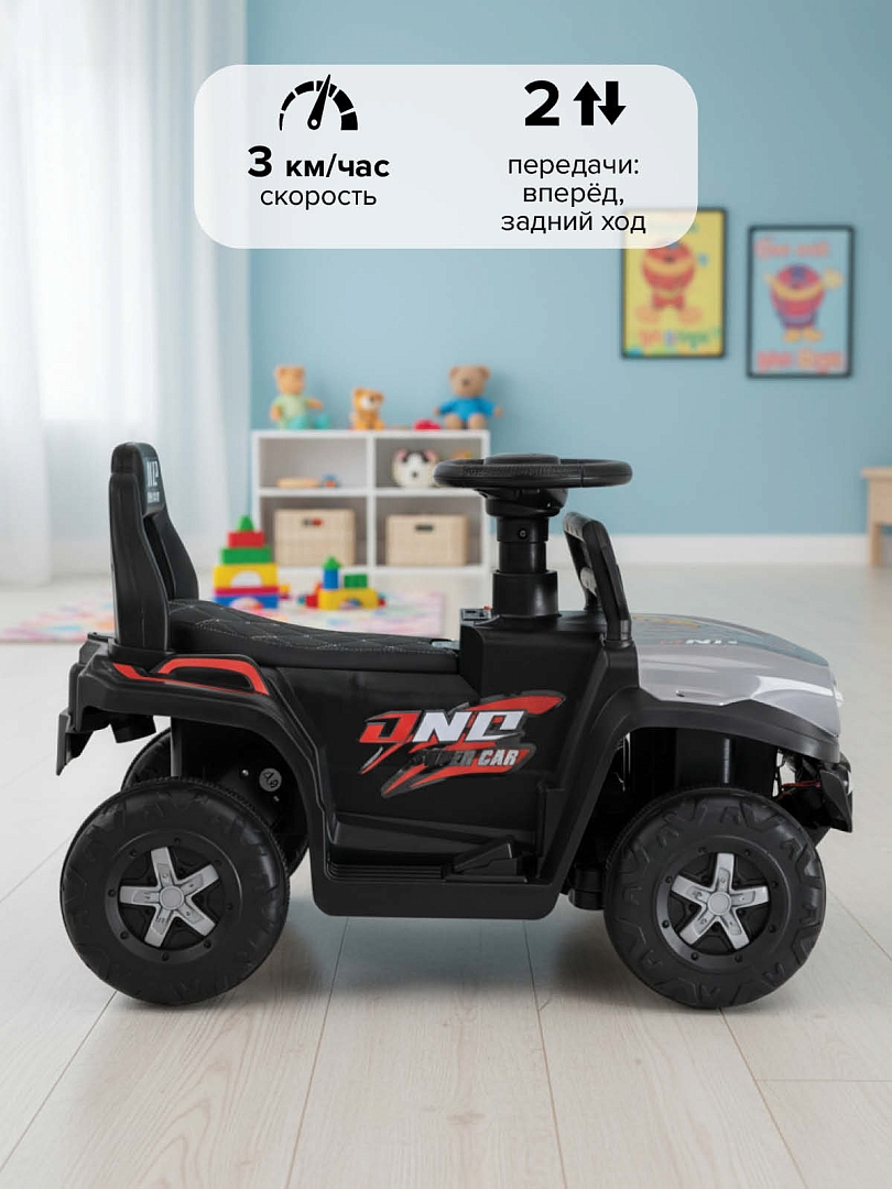 С этим электроквадроциклом ваш ребенок сможет почувствовать себя настоящим водителем. Мягкое сиденье обеспечит комфорт при езде. И не забудьте про фары – свет фар создаст атмосферу настоящего автомобиля!