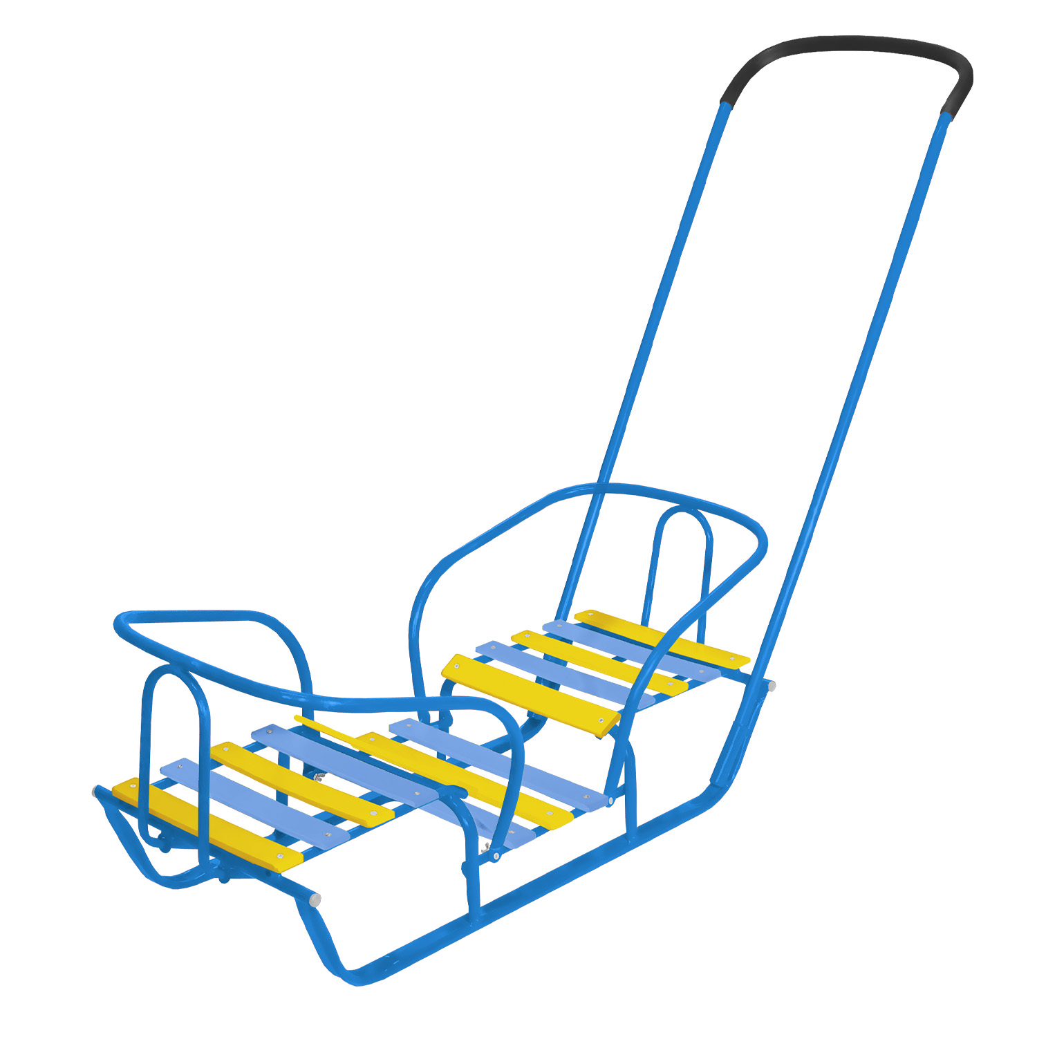 Cанки Ника для двойни за счет особой конструкции позволяют перевозить в них нескольких деток. Каркас санок изготовлен из металлической трубы, которая окрашена при помощи порошковой эмали. Цвет на санках сохраняется долго. Также стоит отметить, что краска позволяет сделать каркас значительно более морозостойким. Спинка и подножка дают возможность деткам сидеть в удобном положении. За счет широких полозьев санки могут легко скользить по льду и рыхлому снегу. Ручка толкатель дает возможность взрослым самостоятельно перемещать сани. На ручке находится резиновая накладка, защищающая руки от скольжения и холода.