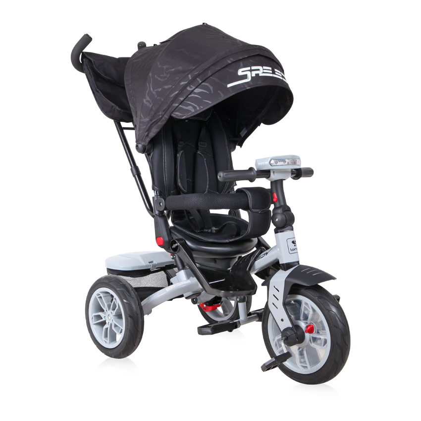 Руль регулируется по высоте, для большей безопасности имеет ограничение угла поворота. Антискользящие грипсы и звоночек сделают поездки еще комфортнее и безопаснее. Мягкое анатомическое сиденье также регулируется по высоте, так что малышу будет удобно ездить вне зависимости от его возраста и роста. А стильная фара на передней вилке осветит путь в сумерках и сделает поездки веселее.