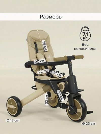Складной трехколесный велосипед Pituso Leve Pro (2026) — Обновленная версия с переставными педалями и магнитным замком