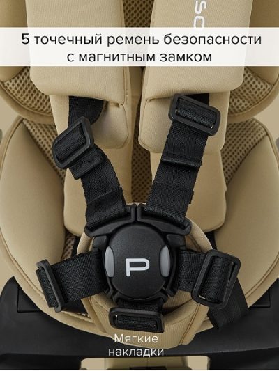 • Магнитный замок: Упрощает посадку и фиксацию ребенка, заменяет классические пряжки на поясе.