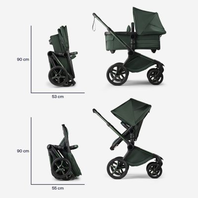 Ручка для управления коляской регулируется по высоте в большом диапазоне. Багажная корзина высоко расположена, не будет цеплять бордюры. Bugaboo Fox 5 имеет очень простую и понятную систему складывания. Ее можно сложить как вместе с установленной люлькой для новорожденных или прогулочным блоком, так и отдельно раму одной рукой. Для более компактного вида можно снять колеса. Еще одна изюминка Bugaboo Fox 5 – это движение в двухколесном режиме, что особенно актуально при преодолении лестниц и других сложных участков дороги. Большой ассортимент дополнительных фирменных аксессуаров Bugaboo обязательно впечатлит родителей. Коляска Fox 5 – идеальная спутница для прогулок в любой точке земного шара!