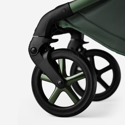 Детская коляска Bugaboo Fox 5 уникальна в своем классе, потому что имеет очень скромный вес при своих полноценных размерах и возможности всесезонного использования. Компактные габариты рамы позволяют легко проезжать в любые проемы, а передние поворотные колеса дополнительно облегчают маневрирование коляской, даже одной рукой. При необходимости, они фиксируются для движения только прямо. Колеса не боятся проколов и перепадов температур. Усовершенствованная система центральной амортизации на раме вкупе с колесами увеличенного диаметра, также оснащенными амортизаторами, делают ход Bugaboo Fox 5 плавным и мягким. Ножной тормоз удобен в использовании, не портит обувь.