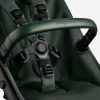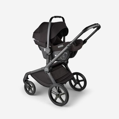 В наружной части люльки, ближе к маме, располагаются два кармана, в которых удобно хранить ключи, телефон или влажные салфетки. Уникальное решение для такого типа колясок – это складывание с установленной на шасси люлькой! Если необходимо, чтобы сложение было более компактным, снимите блок с рамы и превратите люльку в плоскую конструкцию. Чтобы снять люльку с шасси воспользуйтесь боковыми кнопками с функцией памяти. Переносить люльку удобно за съемную ручку-бампер, она поворачивается на 360 градусов для удобного размещения малыша в Bugaboo Fox 5. Пластиковые ножки в основании блока защитят дно от загрязнений. В комплект с коляской входит универсальный фирменный дождевик.