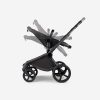 Сиденье коляски Bugaboo Fox 5 можно устанавливать в двух положениях: лицом к маме или лицом вперед, по ходу движения, чтобы малыш мог активнее знакомиться с окружающим миром. В «прогулке» ребенок сидит достаточно высоко от земли, что удобно для близкого контакта с родителями, а также отдаляет малыша от дорожной пыли и выхлопных газов. В положение для сна и отдыха сиденье опускается по типу гамака, когда при опускании спинки ножки также приподнимаются. Подножка телескопически удлиняется, увеличивая спальное место почти до метра. Нижнюю часть подножки легко очищать от крошек и грязи.