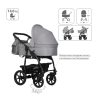 Конструкция данной коляски позволяет устанавливать на нее люльку или сиденье прогулочного блока. Люлька и прогулочный блок реверсивные, их можно устанавливать как «лицом к маме», так и «лицом от мамы». Спальный вариант коляски предназначен для детей в возрасте от 0 до 7 месяцев (весом до 9 кг), прогулочный блок рассчитан на возраст от 7 месяцев до 3 лет (вес ребенка до 15 кг).
