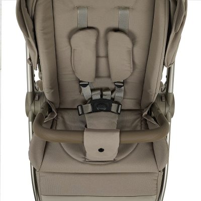 - нижняя часть подножки отделана практичной экокожей – вы без труда избавитесь от следов, оставленных маленькими ботиночками коляска складывается вместе с блоком, независимо от его положения (по ходу/против хода)