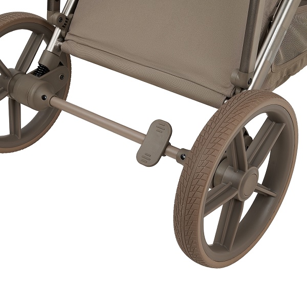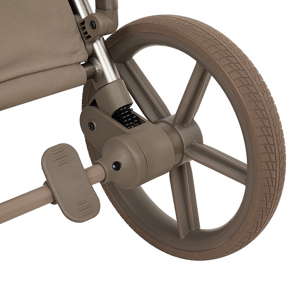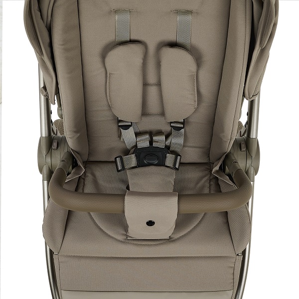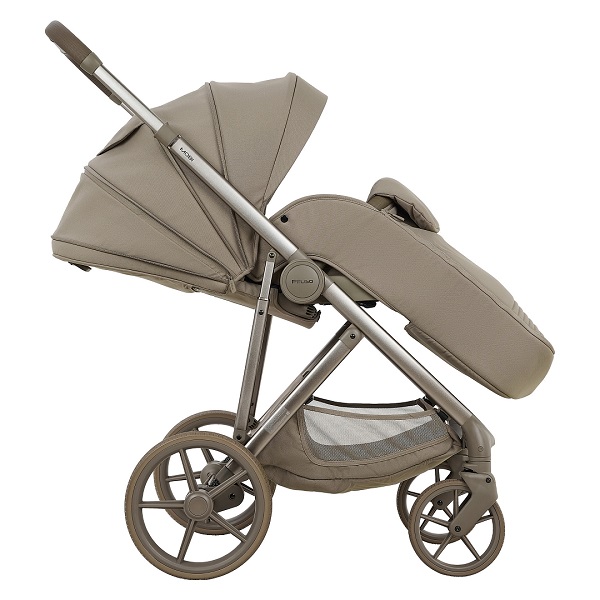 - нижняя часть подножки отделана практичной экокожей – вы без труда избавитесь от следов, оставленных маленькими ботиночками коляска складывается вместе с блоком, независимо от его положения (по ходу/против хода)