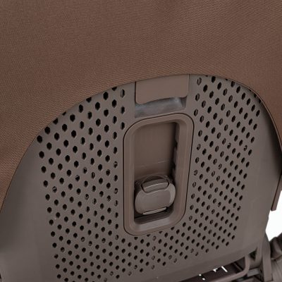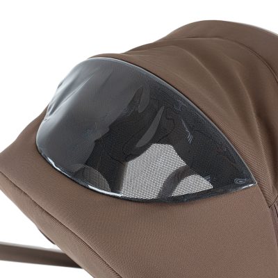Капор прогулочного блока изменяет свою высоту, фиксируется в одном из трёх положений (разница между минимальной и максимальной высотой капа – 6 см). Кнопка-фиксатор расположена на внешней стороне спинки. Спинка выполнена из прочного гипоаллергенного пластика, с функцией проветривания. Кап оборудован дополнительной секцией под молнией, позволяющей увеличить его размер, смотровым окошком и съёмным козырьком.