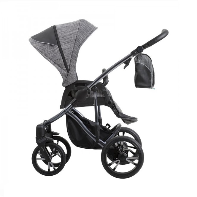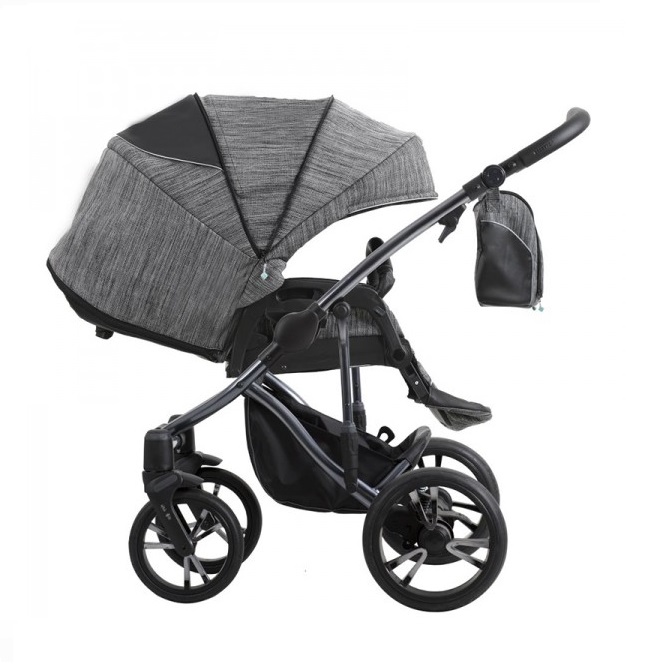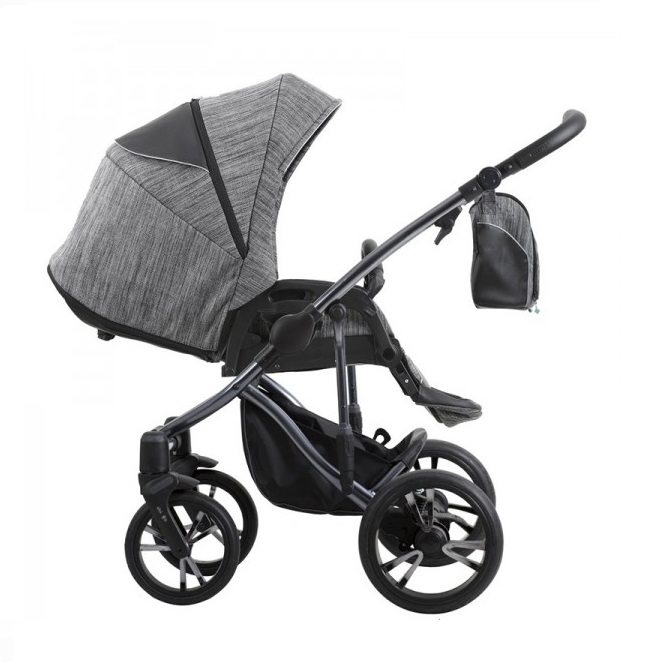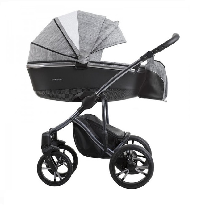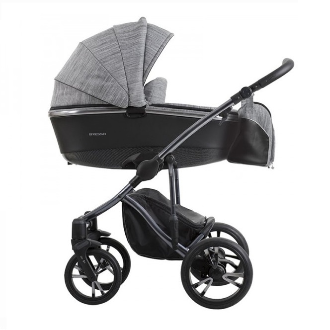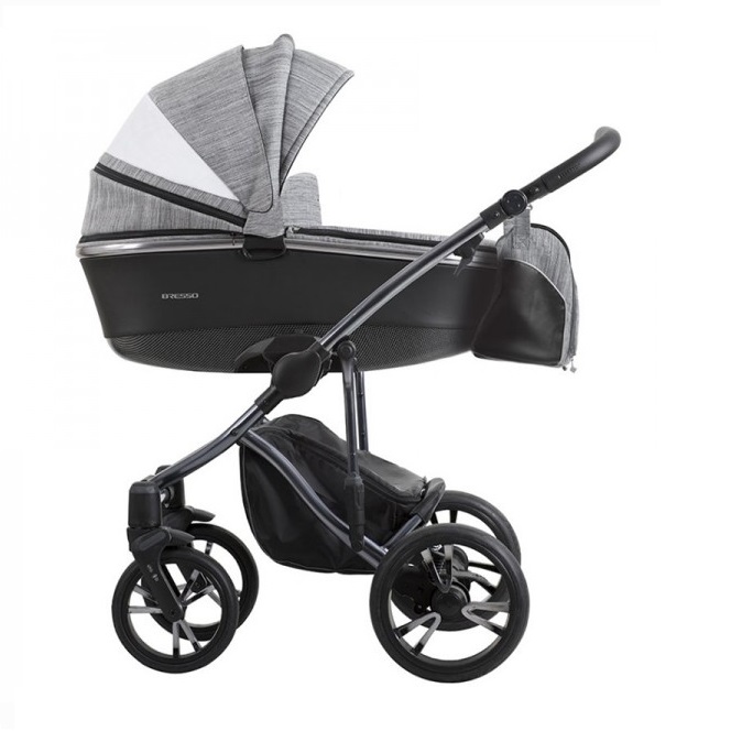 Bebetto Bresso Premium Class DARK (экокожа+ткань) – это коляска для самых требовательных покупателей. Данная модель сочетает в себе дизайн высшего класса и инновационные решения, обеспечивающие комфорт для Вас и Вашего ребенка. Отличительными особенностями данной модели являются изысканный дизайн рамы, дисков колес и ободка на люльке, выполненных в цвете хромированный металлик, а особенную неповторимость ее дизайну придает люлька с карбоновой текстурой дна. Для Вашего удобства в Bebetto Bresso Premium Class DARK 2020 предусмотрено 2 способа регулировки капора спального блока и снятия люльки. В данной модели Вы можете отрегулировать капор легким нажатием на капюшон спального блока сверху или при помощи двух кнопок, расположенных с внутренней стороны люльки. Также Вы можете выбрать способ снятия люльки с шасси: рычаг, расположенный на дне спального блока, или кнопки, симметрично расположенные на боковых креплениях люльки к раме. Приятным дополнением ко всему вышеперечисленному станет крепление чехла люльки и капюшона к спальному блоку с помощью молнии и мягкий непромокаемый матрасик со съемным чехлом из бамбука. Bebetto Bresso Premium Class DARK 2020 – это коляска для тех, кто любит быть в центре внимания.