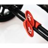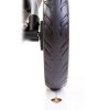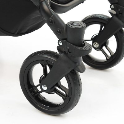 Скромная ширина рамы дает возможность проехать там, где другие коляски не поместятся по габаритам. Быстросъемные полиуретановые колеса не подвержены проколам. Передние колеса – поворотные, с возможностью блокировки в прямом положении. Возле задних расположился стояночный тормоз, обозначенный красной педалью. Удобное нажатие тормоза исключает повреждения обуви родителей. Ручка для управления коляской покрыта вспененной резиной, по высоте не регулируется.