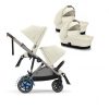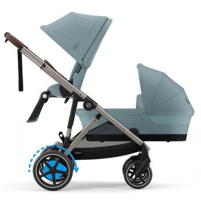 Cybex e-Gazelle S 2 в 1 для двойни комплектуется: шасси с колесами, 2 люльки, 2 прогулочных блока с бамперами, нижняя корзина для покупок + дополнительная корзина для покупок.