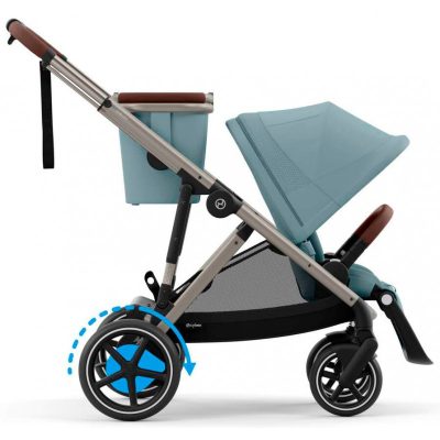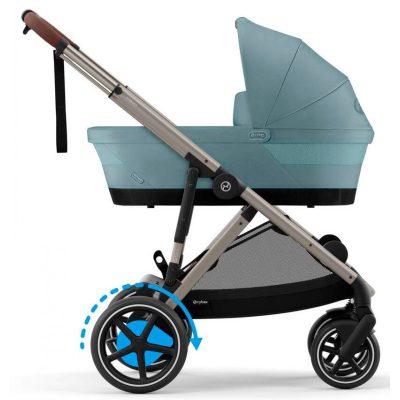Шасси коляски Сайбекс е-Газель 2 в 1 продумано до мелочей. Легко и просто складывается шасси вместе с прогулочным сиденьем, тип складывания – “книжка”. Коляска в сложенном виде устойчиво стоит вертикально и занимает очень мало места. Вы можете сложенную коляску разместить у себя дома в любом месте. Шасси коляски благодаря современной подвеске скрадывает все неровности дороги и имеет очень плавный ход.