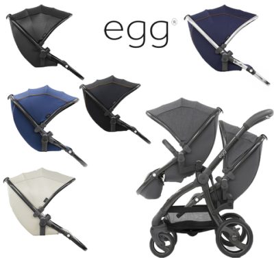 EGG Tandem – компактная и потрясающе стильная коляска для двойни и погодок возрастом мес. до 3-х лет. Плотные резиновые колеса, прекрасная управляемость и современный дизайн – в этой модели от британского производителя есть все, что необходимо для комфортных прогулок с двумя подросшими детьми!