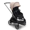 Удобная подножка Bugaboo Dragonfly регулируется в двух положениях при помощи одной белой кнопки. Когда ребенок подрастет, её можно убрать под кресло, чтобы малыш ставил ножки на раму коляски. Подножка выполнена максимально продуманно для комфорта: пластиковый ограничитель – для ножек малыша, а отсутствие текстиля вокруг – для мамы: не придется ничего чистить в осенне-зимний период!