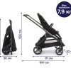 Огромная вместительная корзина способна перевезти максимум вещей. Она имеет очень удобный доступ, в неё поместятся даже крайне объемные вещи. При необходимости спереди и сзади можно поднять бортики-ограничители, они не дадут вещам выпасть. Помимо основной корзины на шасси коляски крепится дополнительная сумка, которая увеличивается с помощью двух молний. Её можно легко снять и зафиксировать на ручке коляски, используя в качестве органайзера.