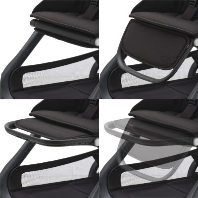 Удобная подножка Bugaboo Dragonfly регулируется в двух положениях при помощи одной белой кнопки. Когда ребенок подрастет, её можно убрать под кресло, чтобы малыш ставил ножки на раму коляски. Подножка выполнена максимально продуманно для комфорта: пластиковый ограничитель – для ножек малыша, а отсутствие текстиля вокруг – для мамы: не придется ничего чистить в осенне-зимний период!
