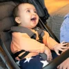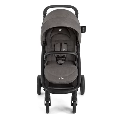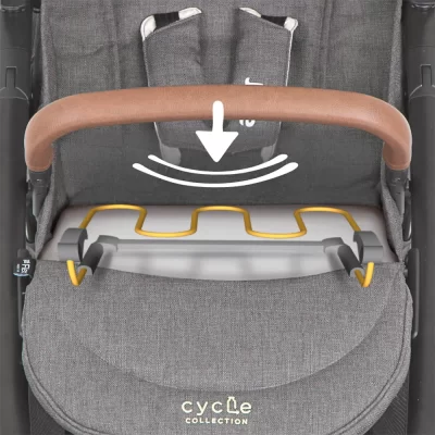 Для фиксации ребенка в коляске Joie Mytrax Pro используются пятиточечные ремни с мягкими накладками и удобным магнитным замком. Они обеспечивают малышу полную безопасность. Во время поездки ему будет удобно держаться за бампер, покрытый качественной и прочной экокожей. В отличие от предыдущей модели, в Mytrax Pro он легко откидывается в сторону, не мешая посадке и высадке маленького пассажира.