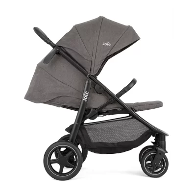 Большая корзина в обновленной модели имеет отличный доступ как спереди, так и сзади. Достать вещи легко даже при опущенной спинке сиденья. Вы очень просто можете сложить Joie Mytrax Pro всего одной рукой! Достаточно пары секунд и коляска сложится книжкой. В сложенном виде она может стоять самостоятельно, а при необходимости её можно переносить за бампер.