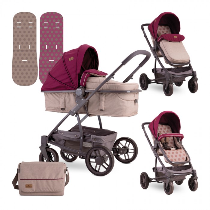 Большие колеса с пружинной подвеской для плавного преодоления неровностей. Передние колеса фиксируются в прямом положении. Светоотражающие вставки обеспечат дополнительную безопасность во время вечерних прогулок.