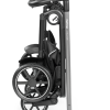Прогулочная коляска Veloce складывается и раскладывается всего одной рукой с помощью специальной централизованной системы складывания, расположенной на ручке. В сложенном виде занимает очень мало места, и сама стоит без опоры, не пачкая ручку и тканевую обивку.