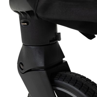 Мягкие прорезиненные колеса обеспечивают плавный ход.