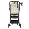 Компактная, функциональная, надежная и стильная коляска верно прослужит долгое время. Даже самый активный малыш в полной безопасности зафиксирован пятиточечными страховочными ремнями с мягкими наплечниками. Спинка легко регулируется с помощью специального ремня, а чехол на ножки заботливо укроет пяточки, при этом просторная багажная корзина будет легкодоступна. Маневренные колеса на подшипниках с амортизацией обеспечат плавный ход. Глубокий капюшон прекрасно защитит от солнца и осадков, рассеивающая сеточка на капюшоне и на заднем смотровом окошке смягчит яркие солнечные лучи.