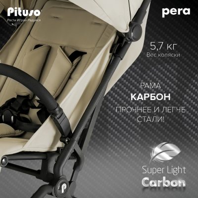 Благодаря прочной конструкции из карбона (а он гораздо прочнее и легче стали!) и надежному шасси детская коляска PITUSO PERA может использоваться как всесезонная и универсальная коляска. Хорошая проходимость, качественная амортизация с дополнительной системой ANTISHOCK на передних колесах и повышенная маневренность позволяют ее использовать не только на тротуарах, но и за городом.При этом её хватит надолго: если большинство прогулок предусмотрены для детей весом до 15 кг, то PITUSO PERA рассчитана на нагрузку до 22 кг.