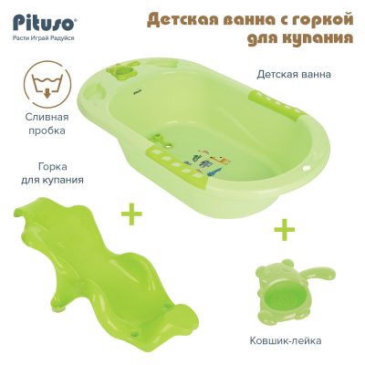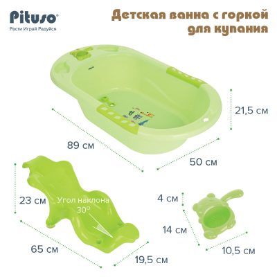 Детская ванна PITUSO с горкой для купания обладает эргономичным дизайном и усовершенствованной формой. Комфортная спинка поможет ребенку находится в ванной больше время и чувствовать себя удобно. Устойчивость на неровной поверхности и гладкие борта обеспечат полную безопасная в эксплуатации.