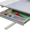 В комплекте данной модели Вы найдете заднюю полку и выдвижной ящик для канцелярских принадлежностей, что позволит Вашему ребенку сконцентрироваться на самом важном. Также парта-трансформер дополнительно может быть укомплектована подставкой для книг и светодиодной лампой.