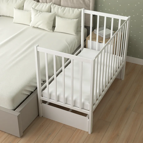 • Для варианта приставной кроватки в комплектации имеются соединительные ремни.