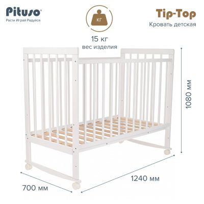 Купить детскую кроватку Pituso Tip-Top ( колесо – качалка ) в Минске можно в нашем интернет-магазине. Доставка осуществляется в кратчайшие сроки.