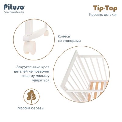 Детская кровать PITUSO TIP-TOP выполнена из натуральной березы и сочетает в себе традиционный дизайн и функциональность.