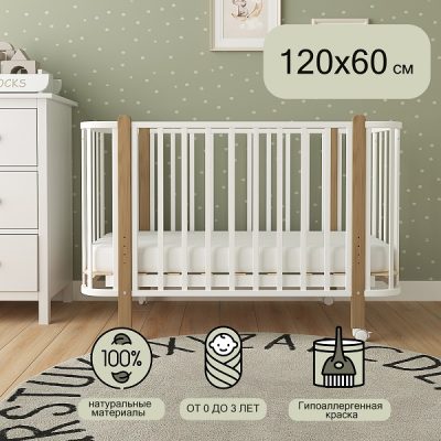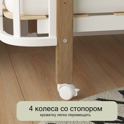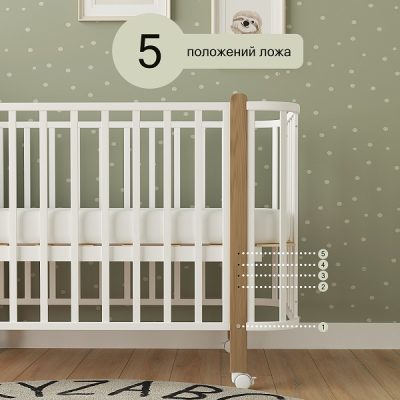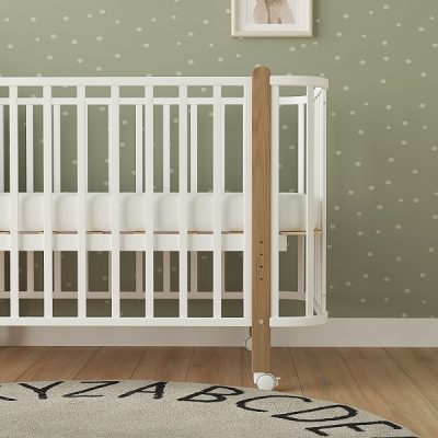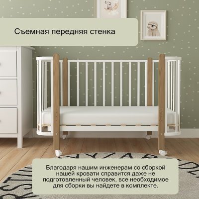 • Съемная передняя боковина для возможности приставления кроватки к родительской и организации совместного сна