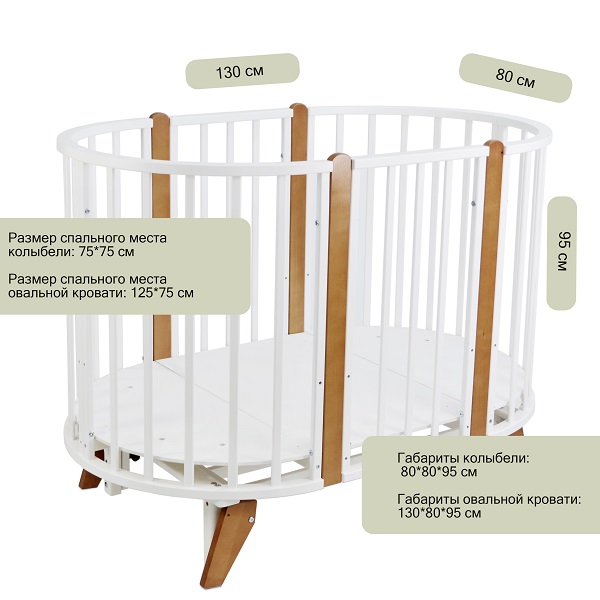 - Габариты овальной кровати: 130*80*95 см (Д*Ш*В)