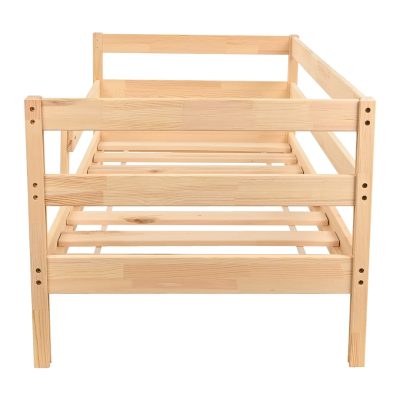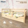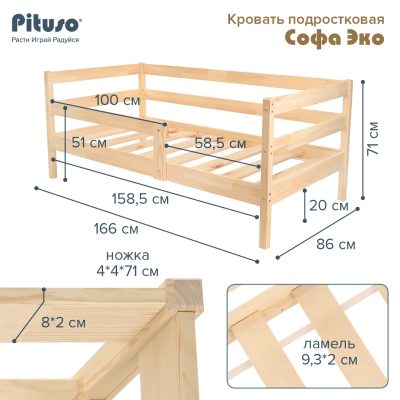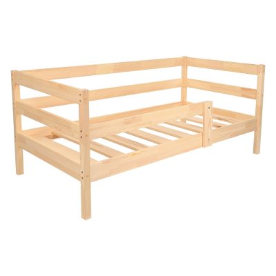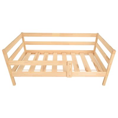 Для безопасности ребенка комплектуется одинарным бортиком, который можно установить как слева, так и справа или вообще без него. Реечное дно из деревянных ламелек. Выдерживает до 80 кг. Состав: натуральное дерево- из массива сосны без покрытия