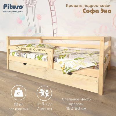 Кровать подростковая “Софа Эко “, хороший вариант для детской комнаты. (спальное место 160*80, реечное дно, съемный бортик) Предусмотрена для детей от 3-х до 7-ми лет.