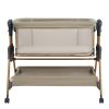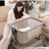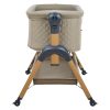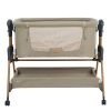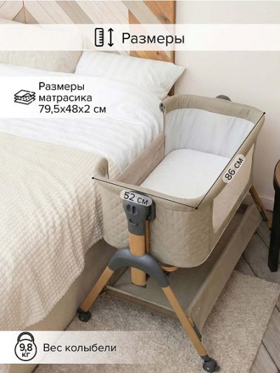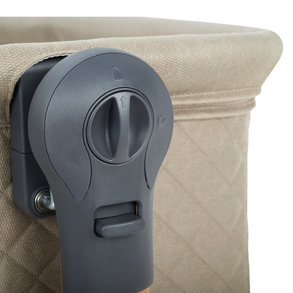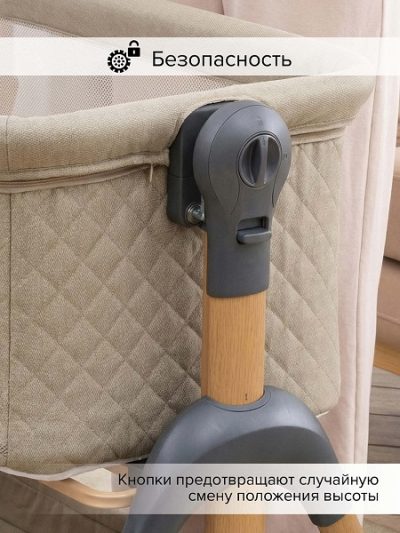 • Всегда рядом: Специальная система крепления (ремни) позволяет быстро приставить колыбель вплотную к вашей кровати. Боковой бортик опускается на молнии, создавая единое пространство.