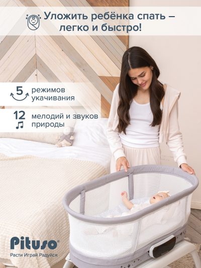Pituso Armonia — это гармония технологий, комфорта и заботы. Подарите своему ребенку сладкие сны, а себе — больше времени для отдыха!