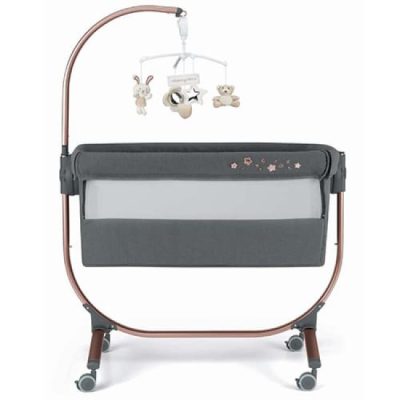 - в комплекте: металлический каркас; съемный держатель для балдахина и мобиля; мягкий матрас.
