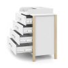 Раскладной пеленальный столик можно установить слева, справа или по центру, он легко снимается, не оставляя никаких следов на столешнице, получается обычный комод.