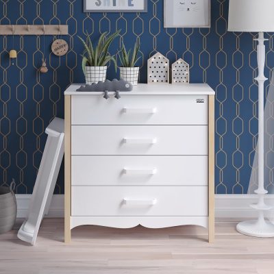 Особенности комода: Красивые деревянные ножки Раскладной пеленальный столик можно установить слева, справа или по центру, он легко снимается, не оставляя никаких следов на столешнице, получается обычный комод. Четыре вместительных ящика на направляющих бесшумного п...