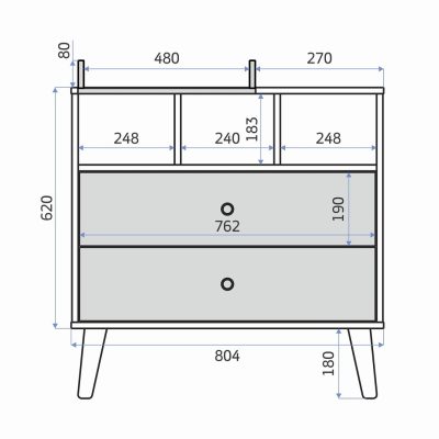 Габариты комода без пеленального столика (Г/Ш/В): 46*80*80 см.
