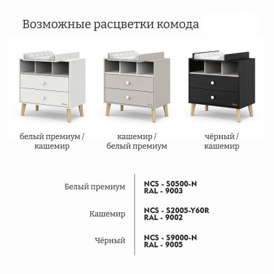 Комод доступен в трех сочетаниях расцветок ЛДСП, каждая из которых обладает потрясающей фактурой поверхности.