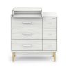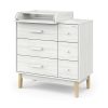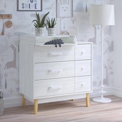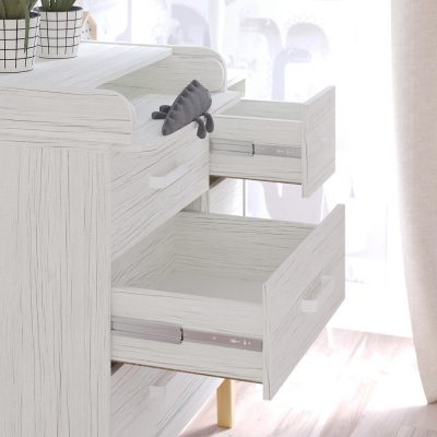 • пеленальный столик можно установит слева, справа или посередине комода, а когда он будет не нужен – снять и убрать. Но удобнее всего его устанавливать слева, тогда будет доступ к верхнему правому ящику при раскрытом пеленальном столике