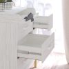 • шесть удобно расположенных ящика – три больших и три маленьких с металлическими белыми ручками.